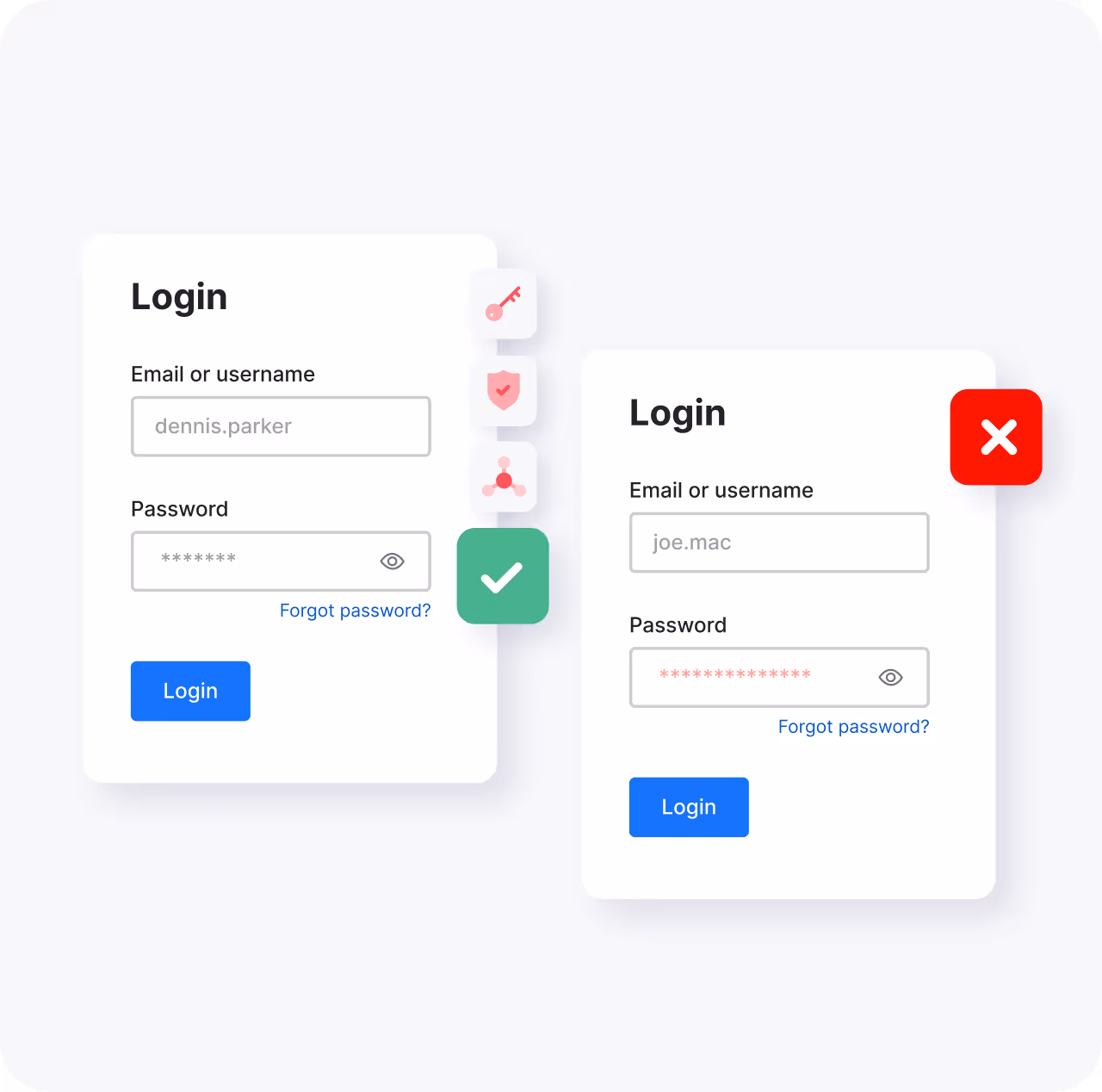 RBAC/ABAC by role, program, clearance, and more, with context-adapting permissions. Make attribute-driven security decisions through internal or external policy decision points (PDPs).